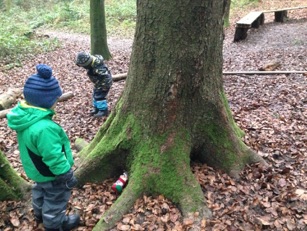 Mit gefülltem Rucksack und warm angezogen, gingen wir heute Morgen in den Wald. Bei der Feuerstelle angekommen, mussten wir Holz suchen, das nicht all zu nass war. Beim Holz sammeln gab es auch eine kleine Überraschung. Die Kinder haben ein Säckli mit Nüsschen, Schoggi und Sugus gefunden. Die Freude war gross, auch wenn wir den Samichlaus nicht gesehen haben.